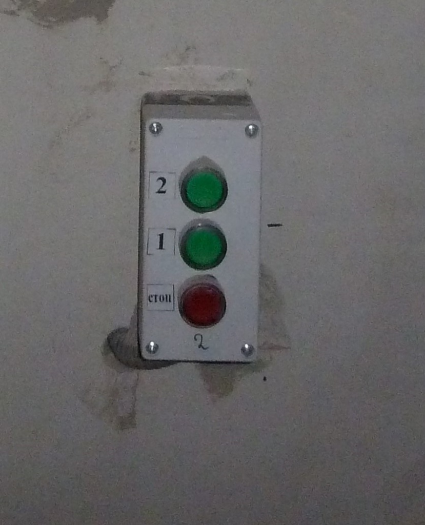 Кнопочный пост на панели из нержавеющей стали, кнопки корейского производства с подсветкой.