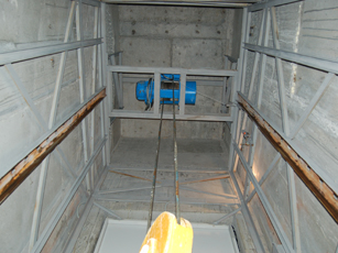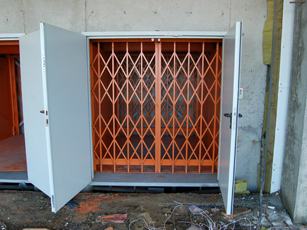 Природа повреждения: В ходе эксплуатации была неправильно загружена грузовая клеть: в нарушение правил эксплуатации грузового подъёмника, груз выступал за пределы раздвижной решётки. Соответственно, при движении клети происходил зацеп груза о шахту, что привело к повреждению решётки.