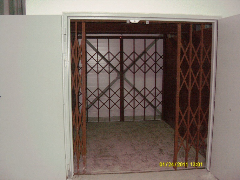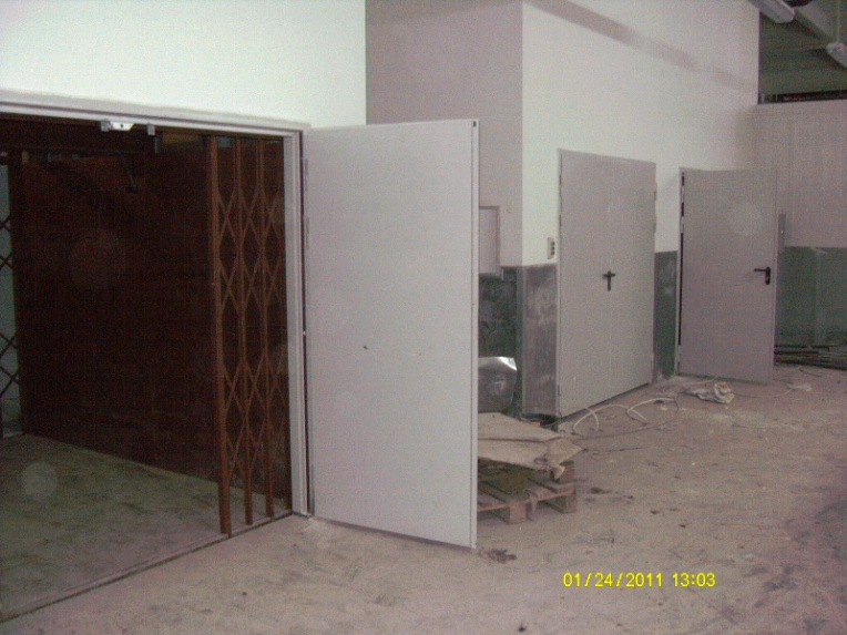 Всё подъемное оборудование оснащено демонтажными балками, противопожарными дверьми, освещением шахты, ограничителем грузоподъемности (ОГП), устройством подачи звукового сигнала при перегрузке.